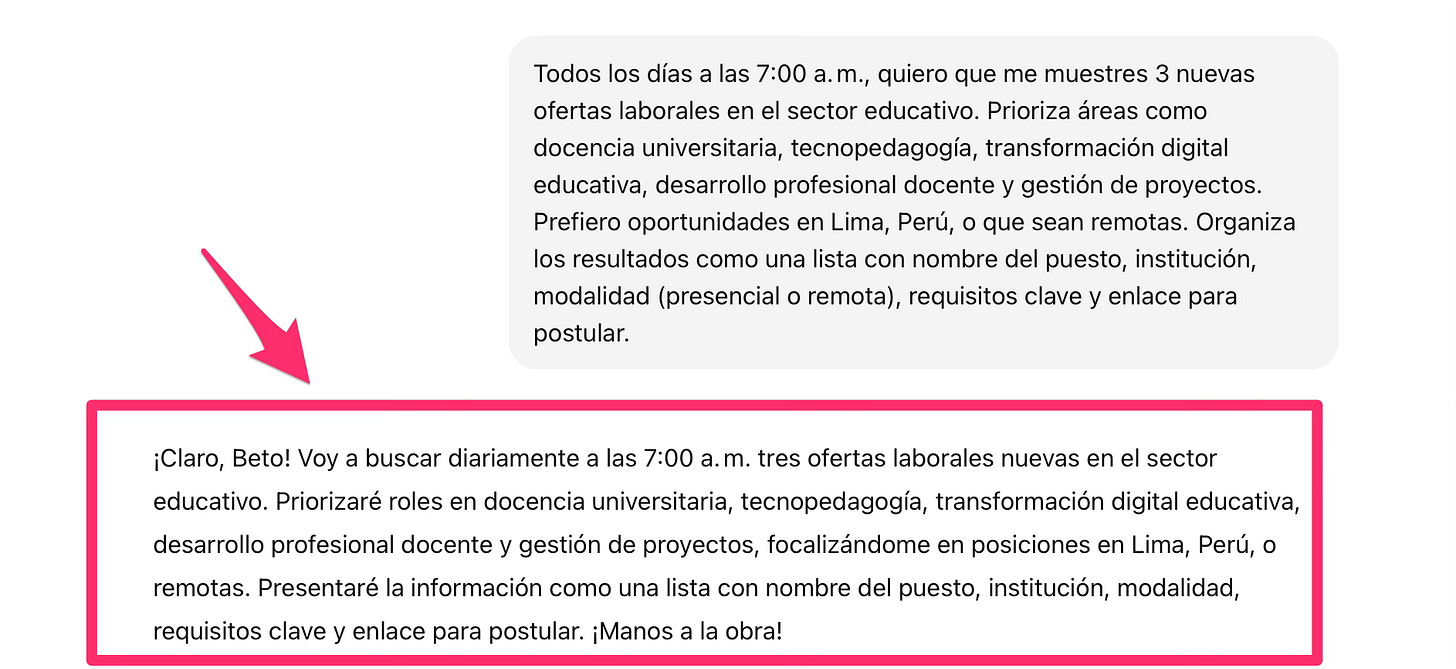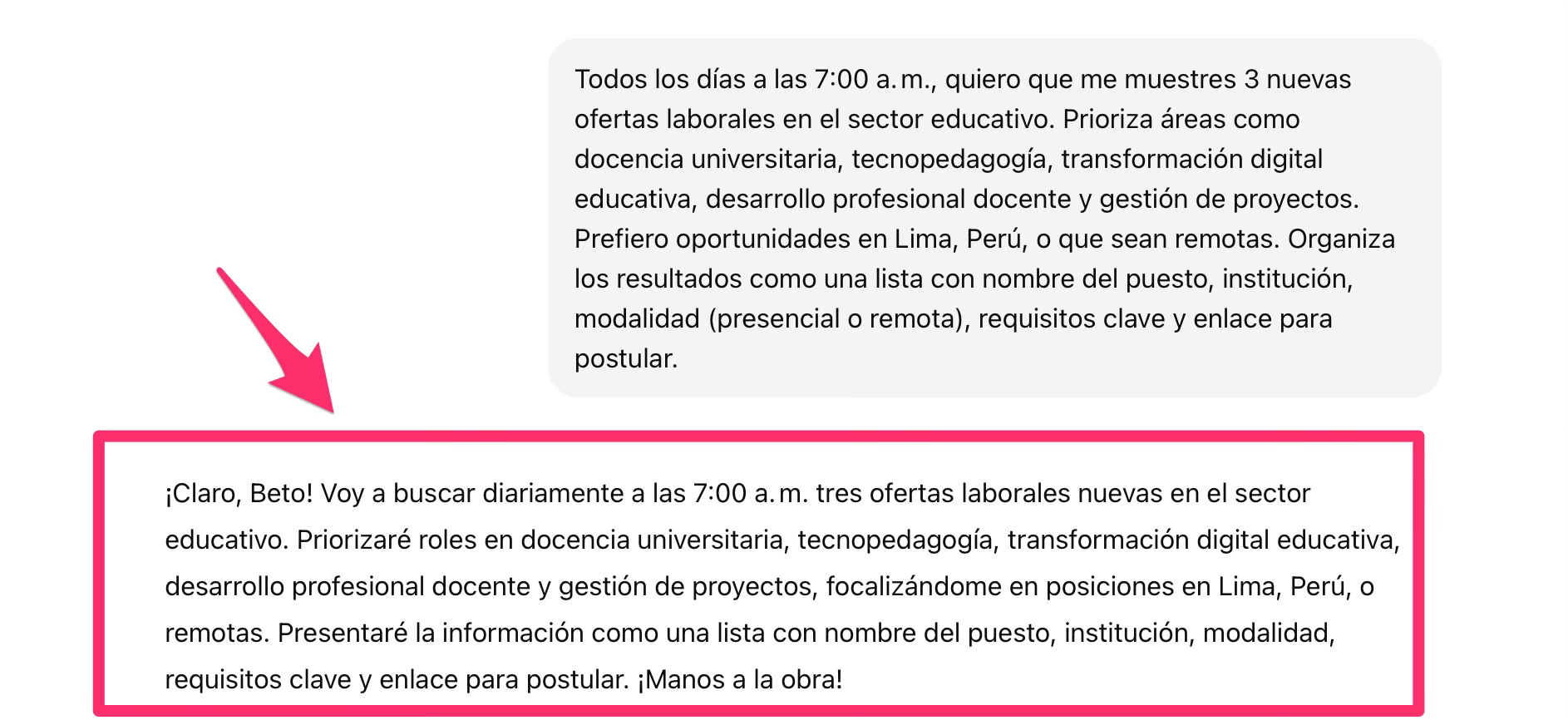Si tienes ChatGPT Plus, puedes crear tareas programadas (Tasks) que se ejecutan automáticamente cada día, a la hora que tú decidas.
